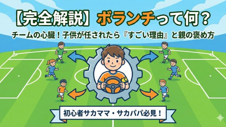 子供が「今日ボランチやった!」と言ってきたけど、どこ?攻め?守り?サッカー用語で最も重要な「ボランチ(守備的MF)」の役割を、車のハンドルに例えて分かりやすく解説。遠藤保仁選手のような「チームの心臓」と言われるこのポジションの観戦・応援ポイントも紹介。